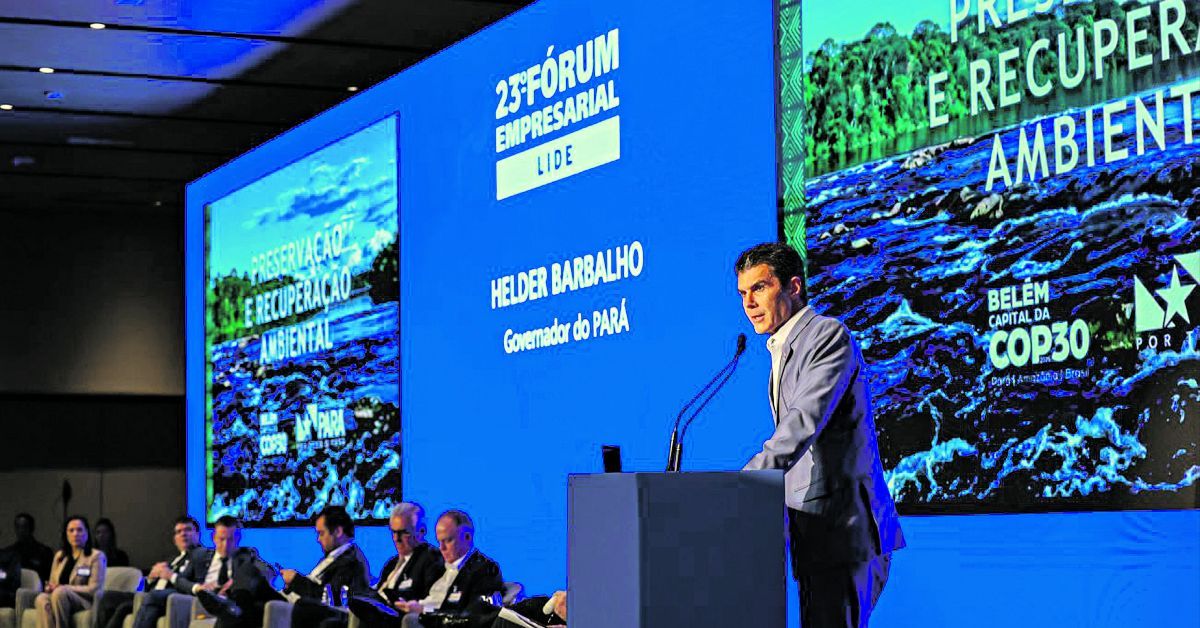 “O Pará hoje é o estado que mais reduz o desmatamento de todas as unidade da federação”, afirmou o governador ao público do evento do Lide. Segundo Barbalho, o Pará reduziu em 42% o desmatamento no estado em 2023 em relação ao ano anterior.