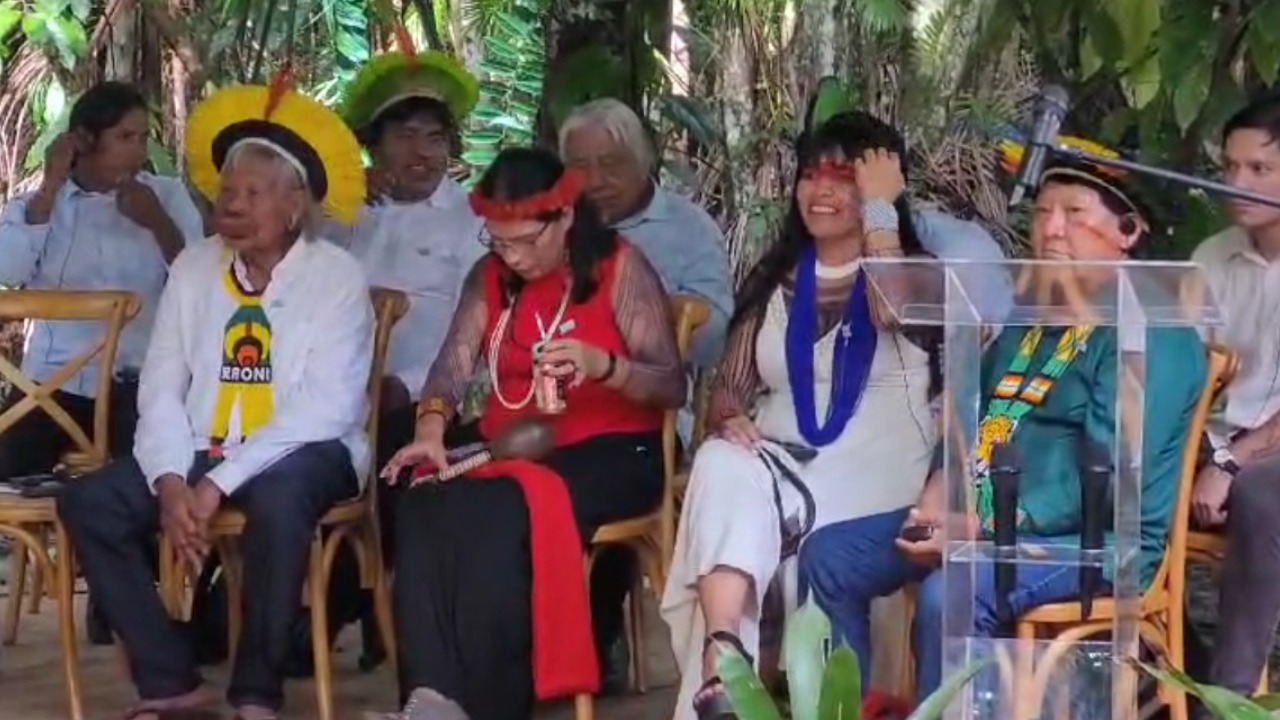Raoni e os demais representantes dos povos originários já estão no local e aguardam a chegada dos presidentes junto com equipes de imprensa e assessores dos presidentes e das autoridades que compõem a comitiva.