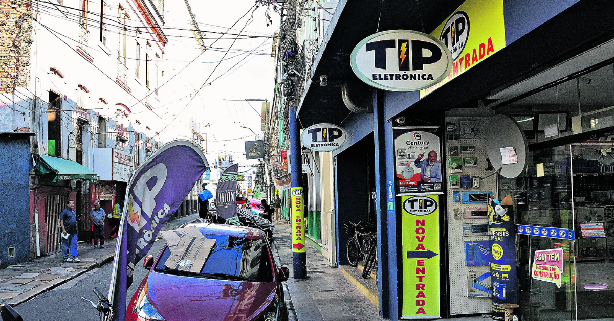 É o caso da rua da travessa Frutuoso Guimarães, que no trecho entre as ruas Riachuelo e Quinze de Novembro concentra cerca de 15 lojas de eletrônicos. Nela o comerciante Walmir Júnior, de 54 anos, trabalha há pelo menos 40 anos. “Com 14 anos comecei a aprender tudo de sonorização e eletrônica com o meu primo mais velho. A loja dele ficava do outro lado da rua”, explica.