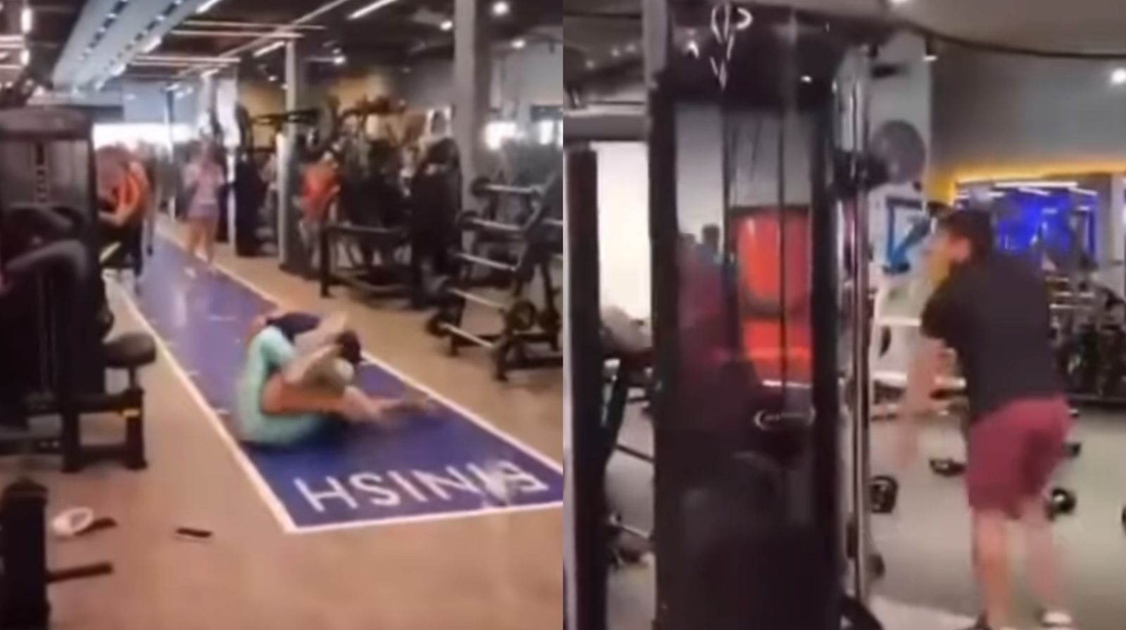 Nas imagens, dois homens aparecem trocando socos e chutes e duas mulheres lutando no chão da academia, bem no meio do espaço.