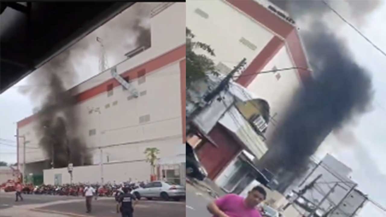 Um incêndio atingiu o supermercado Líder Estrela, em Castanhal, no início da tarde deste domingo (28).