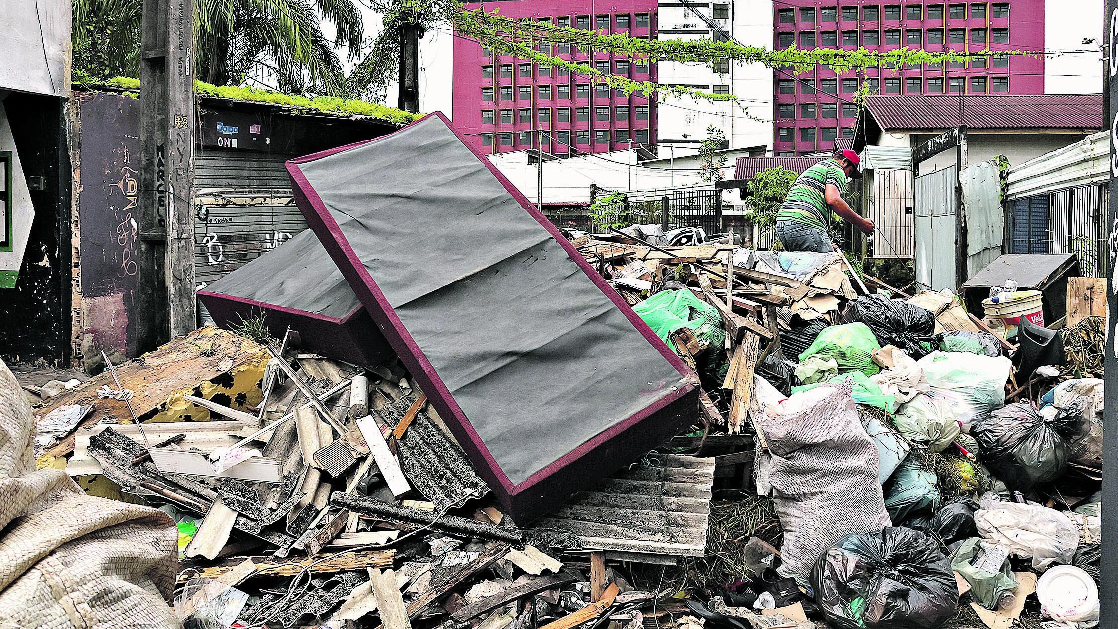 Lixo permanece acumulado em várias ruas da capitalBuracos e lixo causam transtornos em Belém e Ananindeua