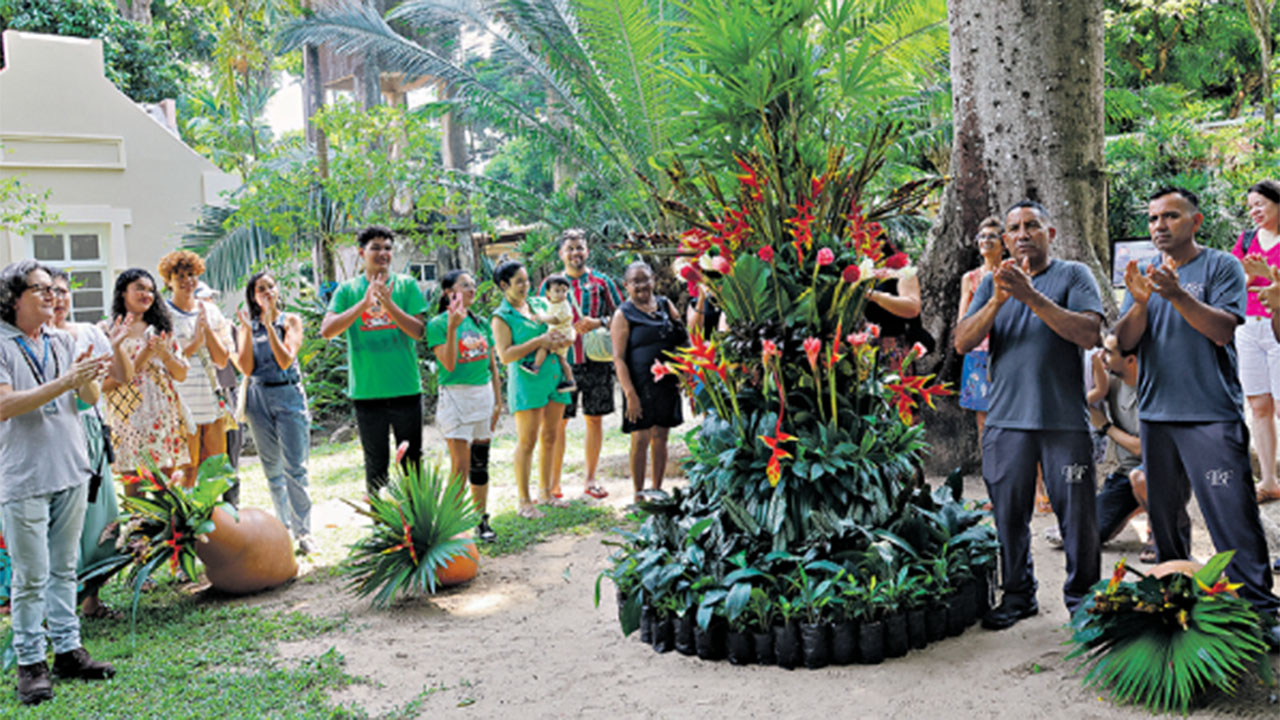 O momento mais aguardado foi quando os visitantes se reuniram para cantar parabéns, ao redor do “bolo de flores” em frente a samaumeira jovem, formado por mudas de várias espécies de plantas e que foram distribuídas aos visitantes.